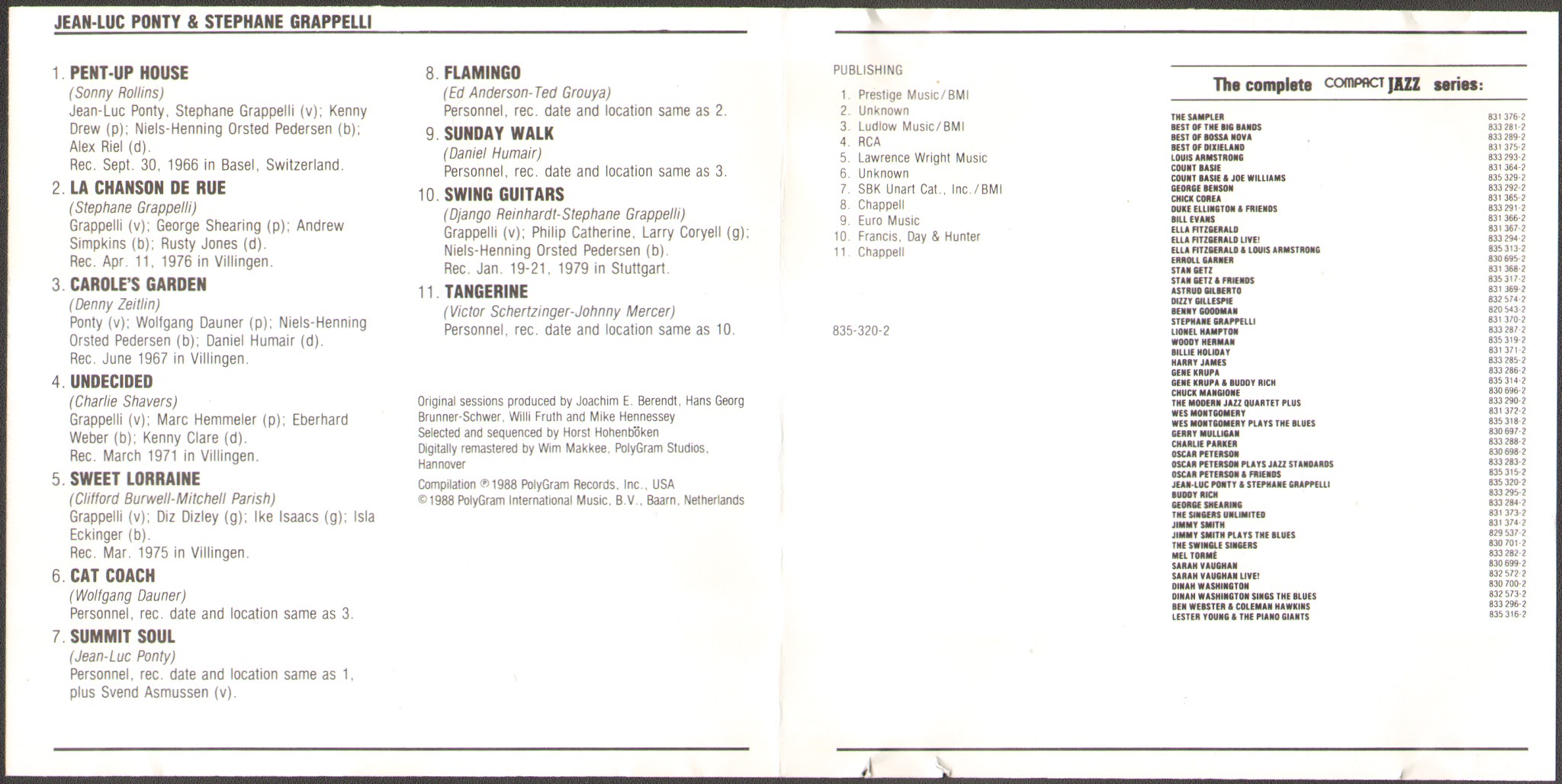 Violin – Jean-Luc Ponty (pistas: 1, 3, 6, 7, 9), Stephane Grappelli* (pistas: 1, 2, 4, 5, 7, 8, 10, 11), Svend Asmussen (pistas: 7)